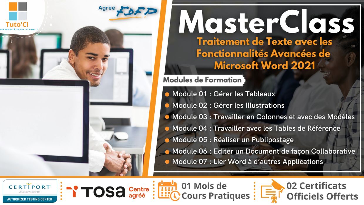 En matière de logiciel de traitement de texte, Microsoft Word s’impose comme incontournable pour gagner du temps mais aussi optimiser son efficacité et sa productivité. La rédaction et mise en forme de textes de nature variée, la mise en page de documents professionnels en vue de leur partage et l'insertion de divers d'objets sont autant de tâches rencontrées en entreprise et de compétences transversales qu’il est important de maîtriser.