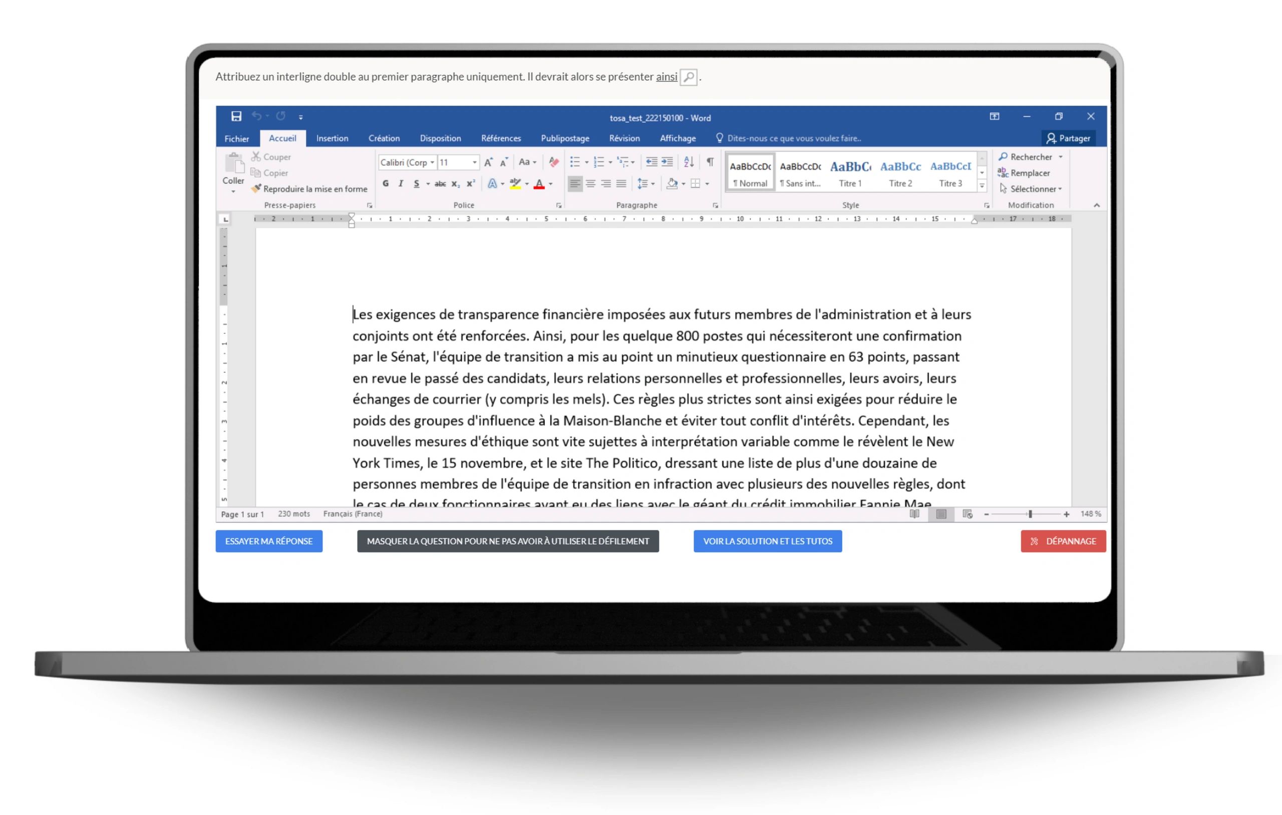 La certification TOSA® incluse dans cette formation, permet d’évaluer votre niveau de maîtrise de Microsoft Word.